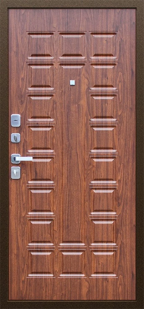 Надежная входная Дверь Спартак Орех темный премиум класса по цене 33 431 руб. Большая толщина стали защитит от проникновения в ваш дом, квартиру или коттедж. Используется очень качественная фурнитура: замки, цилиндры, ручки, защелки. Покрытие и отделка двери изготовлено под внимательным контролем производителя. Дверь имеет долгий срок службы и гарантию.
